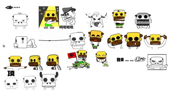 一头可爱的方头小牛,表情有:变形,耍犄角,呜啦啦……我很忙,88。吐舌头,流鼻泡,跳舞,骑摩托,跳触电舞,把自己打倒,撞玻璃,扯犄角,扣鼻子,长出犄角,点头,掉以下水道里,聚光灯下跳舞。
