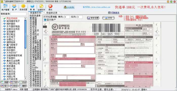 飞速快递单打印软件适合各种快递单打印,用户可以自行设置打印位置,设置字体大小等,可以用鼠标直接移动打印内容到正确位置,保存后,下次可以直接打印,无需再调整,软件使用简单,快捷,懂得电脑基本操作即可使用本软件。