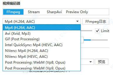 2、视频编码器包括4种,另外输出格式包括mpeg, gif, avi, steam