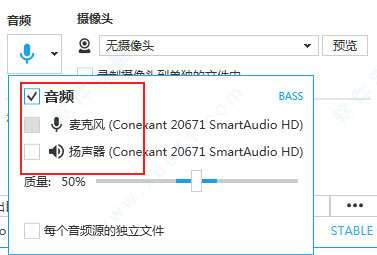 5、注意音频有两个来源,电脑本身的声音和麦克风的声音,你自己按照自己的需要来勾选