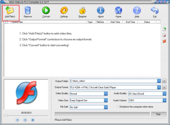 小编推荐:走过路过千万不要错过,错过了Allok Video to FLV Converter你就再也体验不到这么好的服务了。本站还推荐给您魔影、格式工厂官方、视频转gif、MP4/RM转换专家
