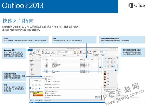 Outlook功能介绍: Microsoft Outlook 2013 支持Exchange ActiveSync,使用 Exchange ActiveSync 连接 Outlook,您将通过最通用的电子邮件服务器和服务接收到基于推送服务的电子邮件、约会安排和联系人,让您快速和您至关重要的人员和群组联系并共享文件;导航栏能够帮您快速便利的方法打开您的邮件、日历、联系人和任务;Social Connector 能从您最依赖的社交网络(LinkedIn、Facebook 和其他)中的联系人处自动获取最新的动态信息。