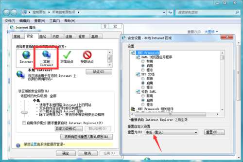 本地Intranet:如图所示,点击自定义级别或直接调整安全级别。打开自定义级别,在设置列表中可以启用或者禁用一些功能,点击确定。