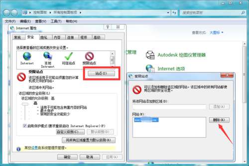 受限站点:如图所示,点击自定义级别或直接调整安全级别。打开自定义级别,在设置列表中可以启用或者禁用一些功能,点击确定。也可以添加受限制站点:点击站点,输入受限网址,点击确定。