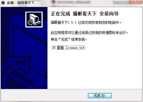 8.点击完成,猫眼看天下软件安装成功