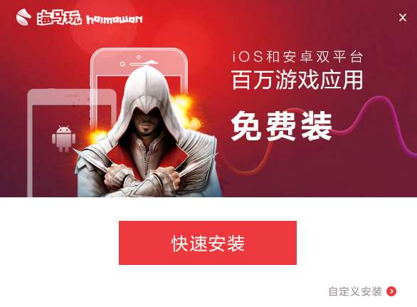 1、在PK下载网将海马手机助手下载下来,并解压到当前文件夹中,点击其中的hm5.0.1.exe应用程序,进入安装向导界面,接着点击右下角的自定义安装。