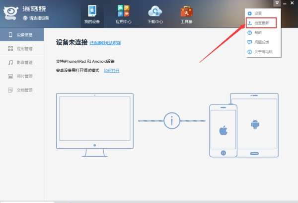 答:1、 检查下您所用的海马苹果助手是否为最新版本,方法如下图。