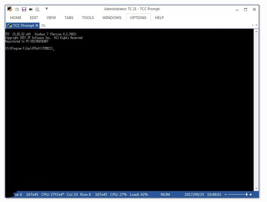 TCC脚本语言是CMD命令提示符命令的大量超集,235个内部命令,386个内部函数和282个系统变量。几乎所有CMD命令提示符命令(例如DIR,COPY,DEL,DIR,START等)都被增强了数百个附加选项,而TCC增加了170个新命令。Take Command通常可以在一行或两行中执行Windows CMD命令中需要几十行(如果可以完成)。