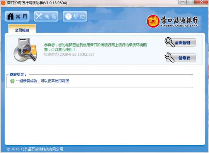 为了让你的电脑达到抚顺银行网银最优环境配置,软件支持一键全面检测和一键修复。