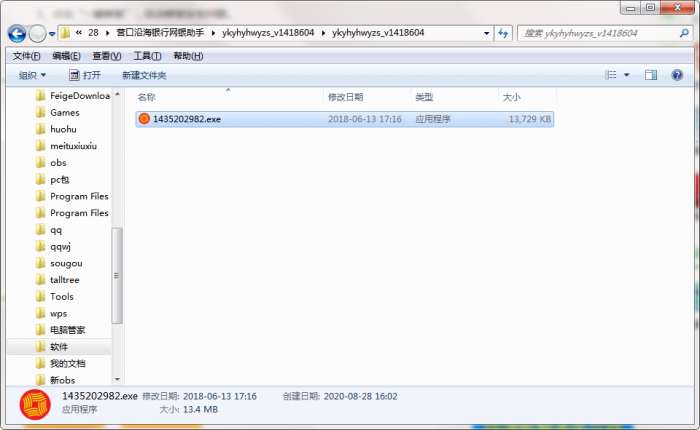 2.解压营口沿海银行网银助手软件,运行“EXE.文件”