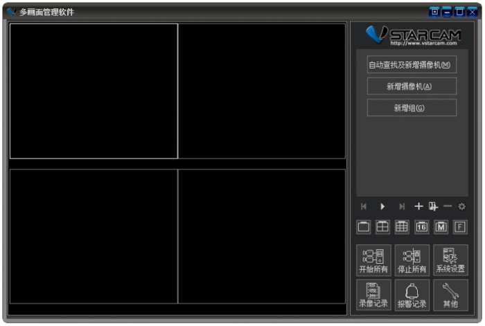 多屏管理软件支持众多流行品牌的摄像机,更支持多层摄像机结构,设置组分,即可同时连接或断开一组摄像机;显示界面可选择1,4,9,16等多种画面规格显示,可通过翻页控制,当然全屏显示是必须支持的;全屏控制所有摄像机,可查看历史记录,报警记录,以满足用户的查找需求。