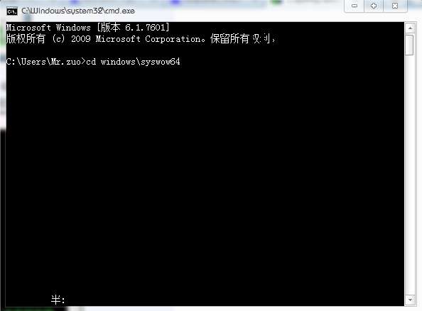 2、在打开的命令提示符里输入:cd windowssyswow64 这个命令是将目录设置到syswow64这个文件夹,之后运行的命令就会在这个文件夹内找文件夹, 输入后按回车,如下图;
