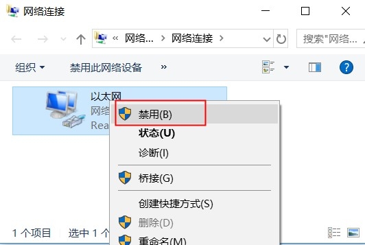 (1)进入控制面板-网络和Internet-网络连接,鼠标右键点击选中“禁用”
