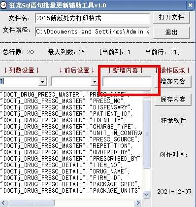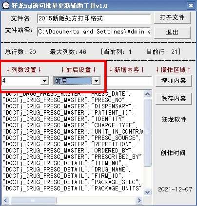 狂龙sql语句批量更新辅