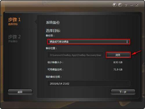 也可选择其他路径存放系统备份,单击浏览更改路径,如图: