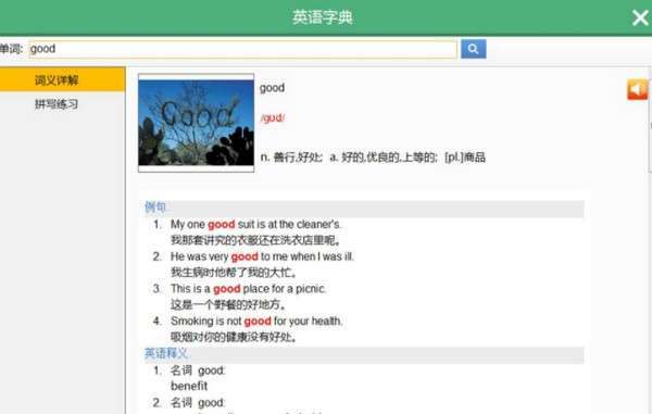 例如英语词典:这是数字化的英语电子词典,远远的超越了厚厚的纸质词典的有限功能,这里不仅可以快捷的查询,查询提示,标准的单词朗读,例句,英语解释。拼写练习,显示记忆熟练度,甚至哪个字幕也错了也会被及时提示,记单词更高效。