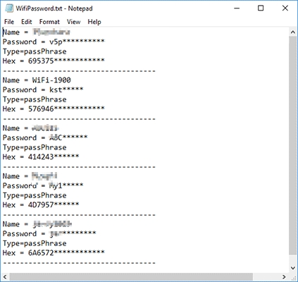 在文本文档中,您可以查看保存的所有WiFi/无线网络密码。那就把它们备份起来,以备不时之需。此外,您还可以在线上传文本文件或在USB闪存驱动器中保存副本。