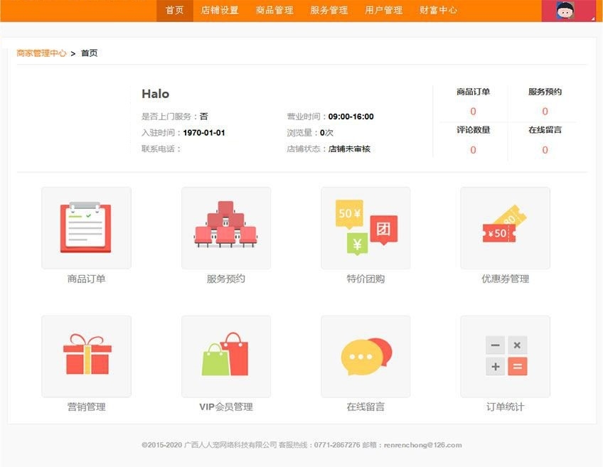 该版块为商家设置个性化微站提供多种功能,是宠物商家打造个性品牌的主要窗口。根据用户需求开设了店招管理、banner管理、联系方式修改、账户信息管理、栏目设置、模板更换等多个功能。在这里您可轻松完成店铺个性化设置。