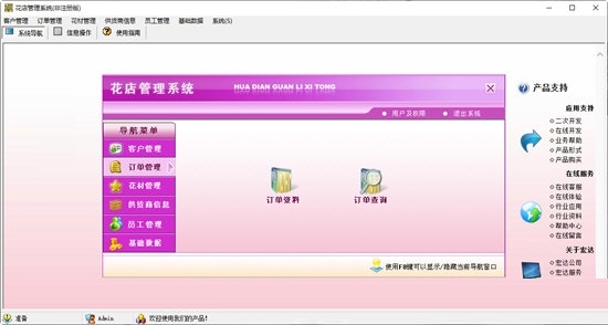 宏达花店管理系统最新版是款界面简洁大方且专门为了从事中小型花店店铺的管理工具,宏达花店管理系统最新版可大大提升花店的管理经营效率,宏达花店管理系统为用户供了客户管理、订单管理、花材管理、供货管理、员工管理等功能。