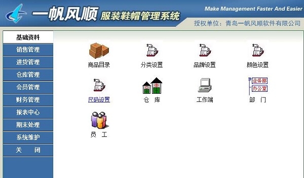 一帆风顺服装鞋帽管理软件最新版是一款服装鞋帽经营管理软件。一帆风顺服装鞋帽管理软件最新版包含了销售开单、销售退货、业务查询、收银查询、客户管理、进货开单、进货退货、付款单、供应商、仓库管理、会员管理以及财务管理等主要功能。一帆风顺服装鞋帽管理软件可以随时备份系统中的重要数据。