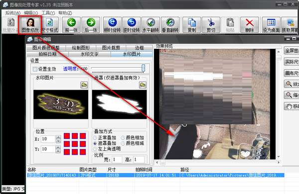 6.批量在图片中以多种方式添加水印图片(例如加上本人或公司的LOGO标志)。