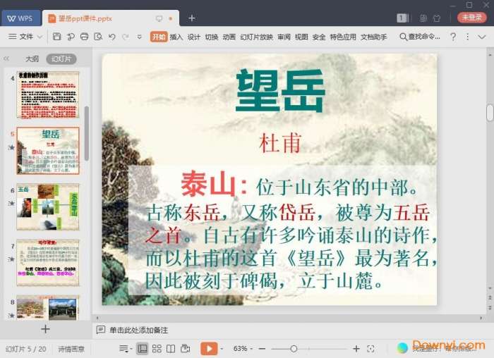 望岳ppt课件帮助你更好的理解这诗歌所想表达的内容,让你在使用的时候可以更加放心的使用。软件上手简单,各种有趣的内容也是丰富多样。如果你需要欢迎来体验!