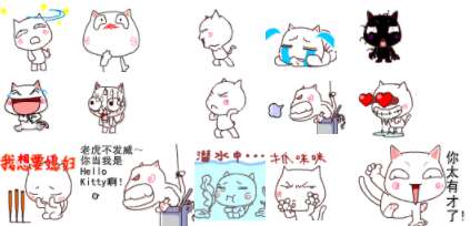 表情有晕,打太极,摩拳擦掌,色,你太有才了!傻眼,看花花公子杂志,跑,伸手指骂人,接心,项,老子跟你拼了,做男人挺棒,睡觉,锻炼,安静,衰,楼下是猪,撞墙,吃手指,潜水中……老虎不发威你当我是hello kitty啊,我要媳妇,要好多媳妇,吊起抽鞭子,抓咪咪, 吐,bye,项,爬地上哭,跳舞,大笑,汗如雨下