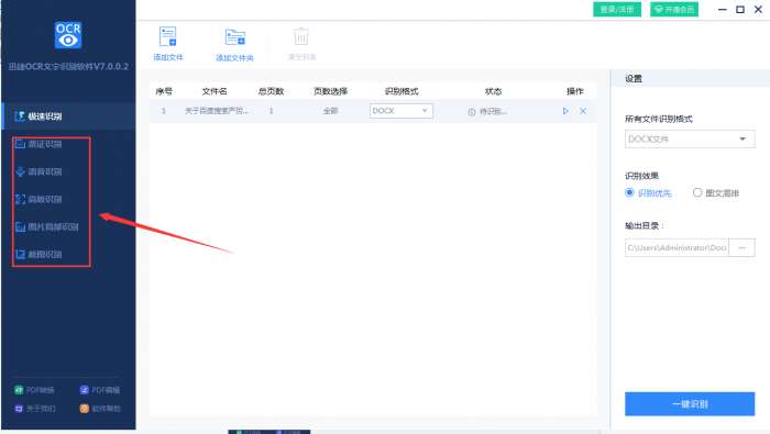 5、左边一栏还有一些票证识别、语音识别、高级识别、图片局域识别、截图识别等一些详细的操作