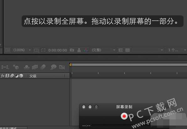 第三,鼠标点击新建屏幕录制选项后,会进入屏幕录制窗口,如下图中所示,中间的红色圈为录制,点击则开始录制。