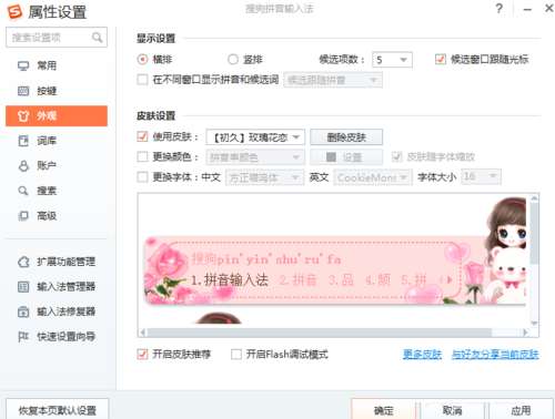 安装完毕后你会看到搜狗输入法出现在左下角,找到衣服的小图标,然后点击就可以看到各种服饰,当然你也可以通过设置,然后找到皮肤设置这一选项。
