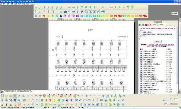 通过上传曲谱资源或者推荐新用户,即可获得更多的打印权限,更多的编辑权限,多声部,midi制作等高级功能,最终将获得完整的简尤对照编辑打印midi输出的功能,让您在学习使用中不知不觉的拥有了完整的软件功能。软件自带有在线曲库,可供用户下载使用。