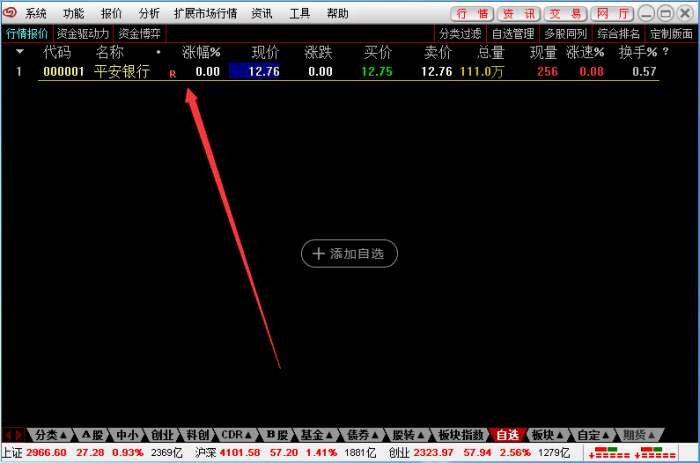 2、点击添加自选