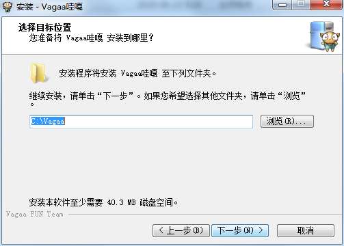 1、在PC下载网下载vagaa哇嘎画时代版这款软件的压缩包,解压后,双击exe文件,进入安装界面,点击下一步