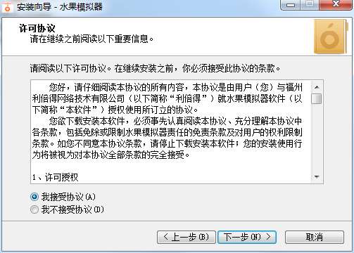 1、在PC下载网下载水果模拟器这款软件的压缩包,解压后,双击exe文件,进入安装界面,点击下一步
