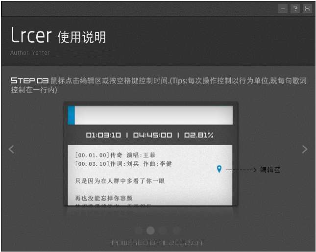 听歌,编辑同步进行。以行为单位,鼠标点击控制,点触间,歌词制作就这么简单