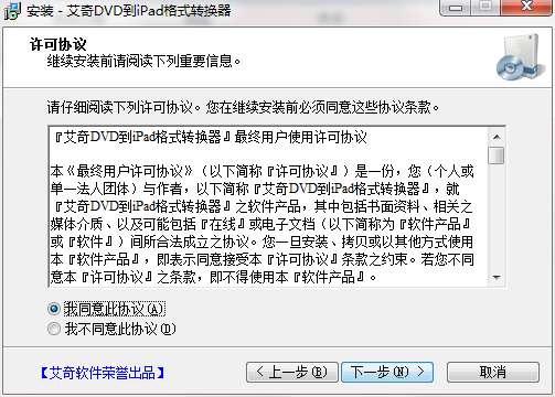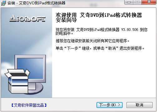 3.双击打开,进入艾奇DVD到iPad格式转换器软件界面,点击下一步