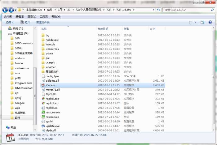 2.解压iCal个人日程管理软件,运行“EXE.文件”