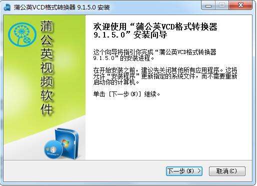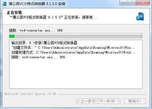 蒲公英VCD格式转换器电脑版正在安装,耐心等待一下