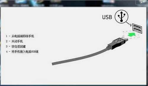 1、先将手机关闭,千万不要连接到计算机上。备好USB数据线待用。