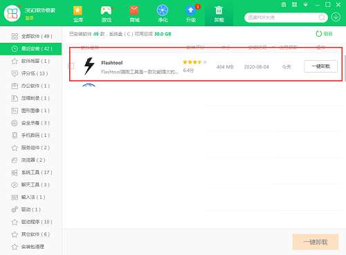 方法二:安装并打开360软件管家,在卸载选项的列表中找到Flashtool强刷工具,点击卸载即可