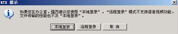 4. 如果您在局域网内使用“远程登录”时,将弹出善意提示窗口,提醒您是在局域内部,是否使用远程登录。