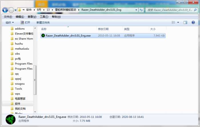 2.解压雷蛇炼狱蝰蛇驱动软件,运行“EXE.文件”