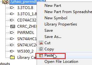 4、找到自己的库文件夹,右击粘贴即可。至此,就完成了将已有原理图中symbol加入到自己库的操作。