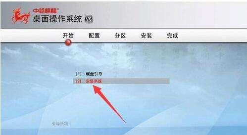 2、插入已刻录“中标麒麟桌面操作系统”的系统光盘,并设置电脑从光盘启动。此时重启电脑将显示如图所示的安装界面,选择“2、安装系统”项进入。