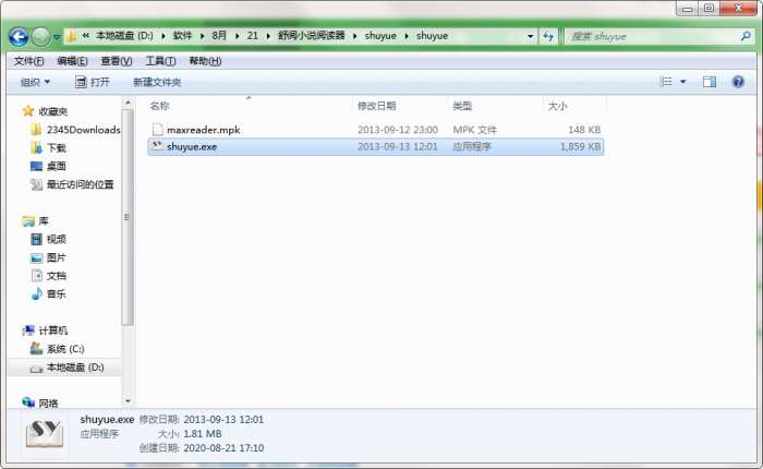 2.解压舒阅小说阅读器软件,运行“EXE.文件”