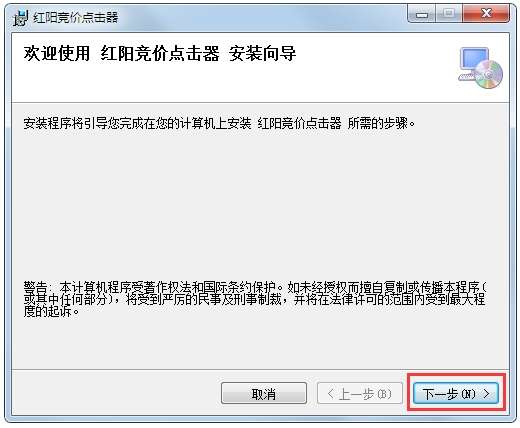 1、下载文件找到“红阳竞价点击器2016.msi”双击运行,进入软件安装向导界面;