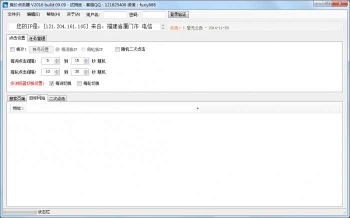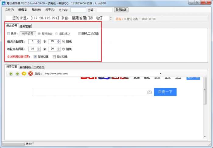 2、下图是点击设置,包含了换ip,随机换ip、每词点击间隔、每轮点击间隔等;