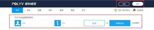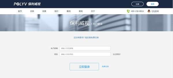 用户登录:方法一:用户访问保利威视官网,点击注册/登录,或者直接在下方输入账号跟密码登录,如下图所示;
