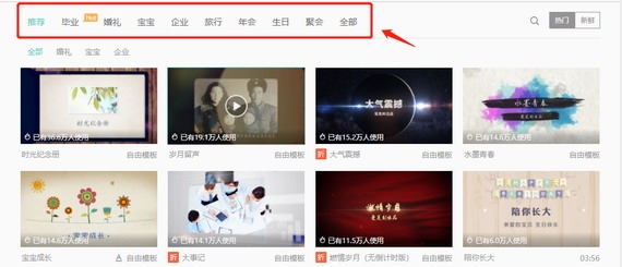 1、筛选模板:点击相应的标签显示与该标签相关的所有模板。