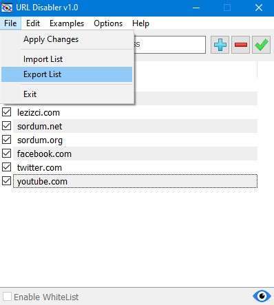 在示例菜单下作为示例给出。导出和导入选项位于文件菜单下,因此您可以轻松地重复使用您创建和备份一次的列表。